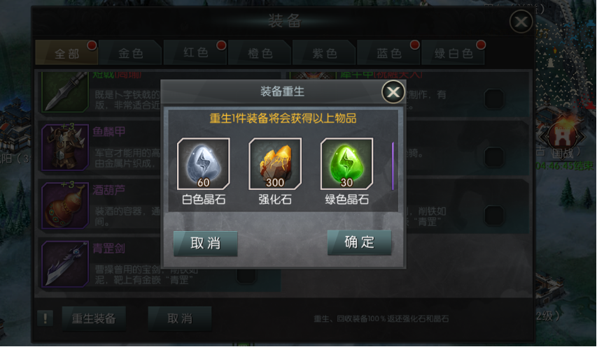 強化百分百成功,裝備最高強化+12,同時會消耗一定的強化石和強化結晶。裝備的強化好就好在玩家不需要擔心強化低品質(zhì)的裝備會浪費材料,游戲中可以重生裝備,無條件返還所有的強化素材,非常的方便。