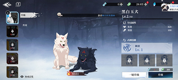 3、式神升星需要消耗對(duì)應(yīng)碎片,升星后可解鎖技能,并提升全局屬性。