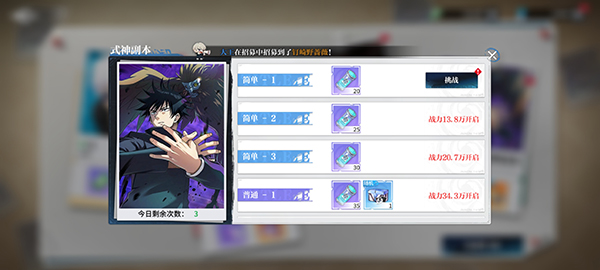 3、隨著你的戰(zhàn)力不斷提升,在式神副本中挑戰(zhàn)更高級(jí)的難度副本,可以獲得更高品質(zhì)的式神碎片,每天挑戰(zhàn)的次數(shù)記得一定要完成,產(chǎn)出的材料性?xún)r(jià)比很高,就算花費(fèi)鉆石完成也是必須的。