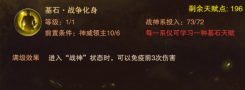 最后戰(zhàn)神的需要其他系點天賦100點才能解鎖 屬于進階天賦(更強力)