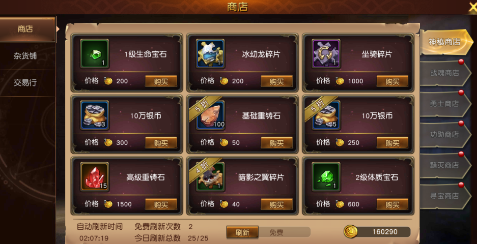 銀幣:銀幣作為游戲內(nèi)功能消耗性道具,銀幣的獲取途徑也幾乎涵蓋了游戲內(nèi)的各大玩法。主線關(guān)卡、世界塔、哥布林副本、競技場、團隊副本、遺跡副本,都能獲得銀幣。在雜貨鋪除此之外,在每日的在線活動,簽到以及活躍度獎勵中也能獲取少量銀幣。