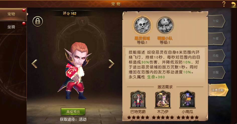 寵物:作為陪伴玩家成長的忠實伙伴,魔龍世界中有數(shù)十種寵物可供玩家選擇,玩家可通過寵物升級、升星、寵物技能升級、以及連攜技能的佩戴來提升自身實力。