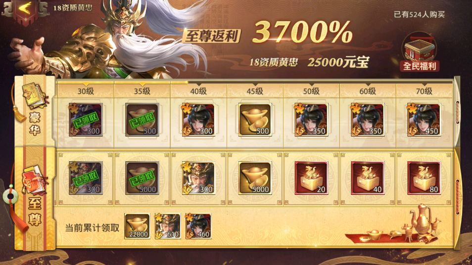 后排英雄玩家可以通過游戲內(nèi)免費(fèi)贈(zèng)送的高級(jí)求賢令抽去16資質(zhì)武將去補(bǔ)齊后排缺失的輸出。這邊推薦玩家可以購買6星黃忠獲得獲得16資質(zhì)黃忠,玩家購買后通過16資質(zhì)黃忠活動(dòng)可以獲得弓神印,在晉升臺(tái)可以將黃忠晉升為18資質(zhì)紅將黃忠。