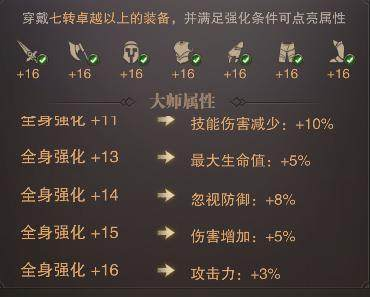 強(qiáng)化+11強(qiáng)化需要的材料、積分少,性?xún)r(jià)比較高,建議玩家主要激活+11屬性: