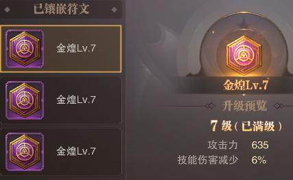 優(yōu)先升級(jí)武器套、首飾套到7級(jí)。符文的特殊性就是滿(mǎn)級(jí)7級(jí)加攻擊和裝備攻擊力。
