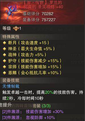 再看看首飾套級(jí)符文屬性:攻擊力+625,技能傷害減少6%。