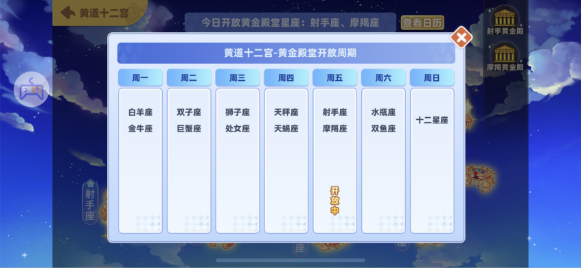 星座玩法在挑戰(zhàn)里,每天會有兩次免費(fèi)次數(shù),可以選擇當(dāng)天的開放的星座進(jìn)行挑戰(zhàn),周末全部星座都會開放。