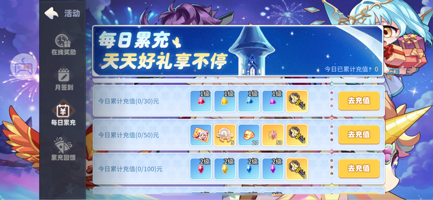 每日累充中,不同檔次都會送星座鑰匙,每一把鑰匙可以挑戰(zhàn)一次。
