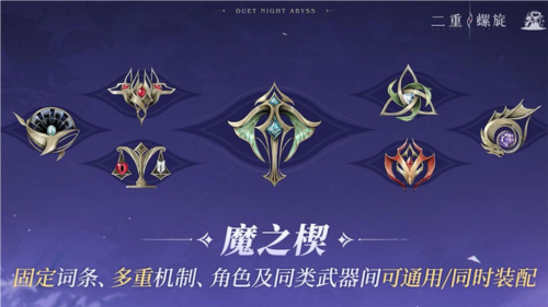 二游的核心玩法之一是養(yǎng)成,養(yǎng)成則繞不開對隨機詞條的強化。市面上許多產(chǎn)品都采用了隨機詞條拉長玩家的養(yǎng)成周期,期間也勢必會浪費玩家很多時間成本,這也是導(dǎo)致大家都覺得二游過肝或者正反饋不強的主要原因。為了區(qū)別于傳統(tǒng)二游里的同質(zhì)化養(yǎng)成套路,《二重螺旋》在養(yǎng)成玩法上做了減法,其核心養(yǎng)成系統(tǒng)——魔之楔,采用了固定詞條設(shè)計,玩家強化升級再也不用賭詞條,所見即所得。而且不同角色、武器均可以配備同一套魔之楔,為玩家大大降低養(yǎng)成消耗的時間成本。