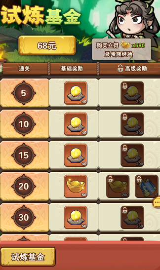 3,試煉之塔,可獲取銅幣進階石和武將經(jīng)驗,闖關(guān)越高獲取的材料越多,建議購買試煉基金,試煉基金送的材料以及招募卷和元寶還是很劃算的