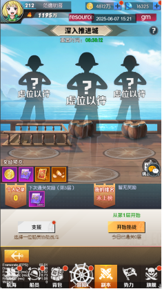 2.?共三個玩家組隊(duì),每個玩家只可出兩名船員,組成6個船員的隊(duì)伍進(jìn)行挑戰(zhàn)