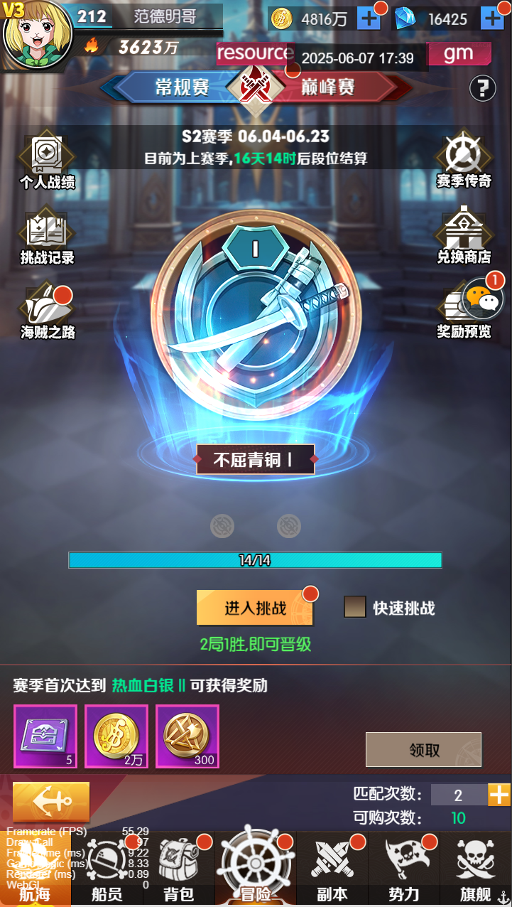 2.?挑戰(zhàn)勝利后獲得段位經(jīng)驗(yàn)與戰(zhàn)斗獎勵,段位越高獲得的加成獎勵越高,挑戰(zhàn)失敗會扣除段位經(jīng)驗(yàn)獲得少量獎勵。